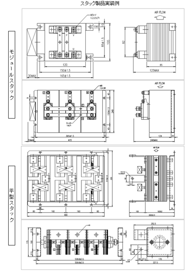スタック製品は、ダイオード・サイリスタの単相全波、三相全波などを揃えております。